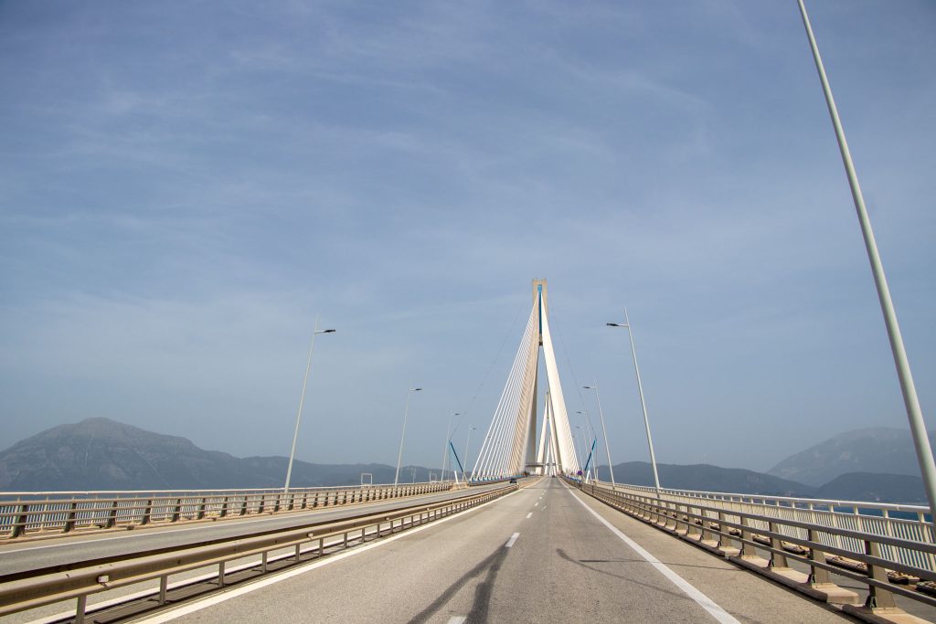 Tegen de negenen zitten we op de moto, eerst naar het pleintje want daar is een supermarktje, en op zoek naar de post voor de postkaarten. We kopen ons middagmaal en water maar geen postkantoor te bespeuren. Wij dus weg. Het zonnetje is al volop van de partij, de temperatuur geeft al 25 graden. Het is zalig rijden op de bochtige wegen. De uitzichten zijn hier geweldig. We rijden richting Patras, en we komen weer niemand tegen. Hier zitten we tussen de landbouwvelden. Hoe dichter we bij Patras komen, hoe drukker het wordt, alhoewel druk kan je dit niet noemen, maar toch, we zijn dat niet meer gewoon hè. Ondertussen is de temperatuur geklommen naar 30 graden, we smelten in ons motopak. Voor we de Peloponnesos verlaten, stappen we nog even van de moto in Farres om te genieten van al het moois dat we hier mogen beleven hebben. In Patras nemen we weer de mooie brug, richting het vasteland. Peloponnesos, hier komen we zeker nog eens terug, veel te mooi, veel te lekker eten, en de mensen zijn hier super vriendelijk.