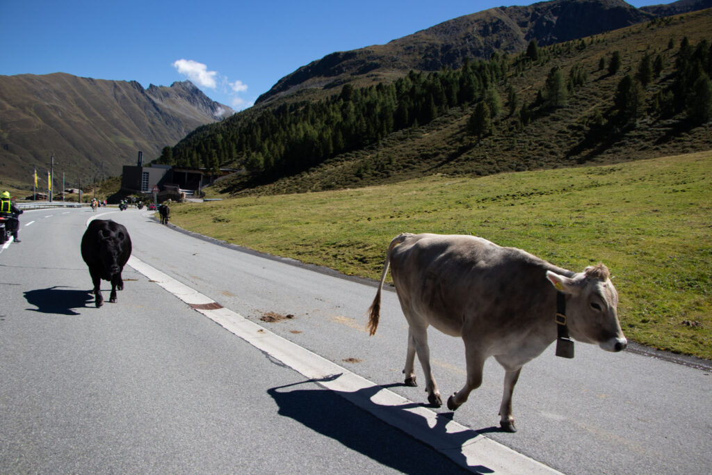 Tegen half tien zijn we klaar om te vertrekken, ondertussen krijgen we te horen dat er al een paar tegen de grond zijn gegaan. We rijden samen met de Bonnies, de stropkes en onze nieuwe vriend, Raoul. We rijden richting de eerste bergpas, de Hahntenjoch. Ook hier een helse drukte, auto’s, moto’s, fietsers en campers, en als ze beginnen voorsteken wordt het gevaarlijk. Gelukkig gebeuren er geen accidenten. Eens beneden is het mooi rijden, tussen de kleine bergdorpjes. In Sautens, aan de raftingclub, drinken we een koffietje in het zonnetje. Het is genieten.