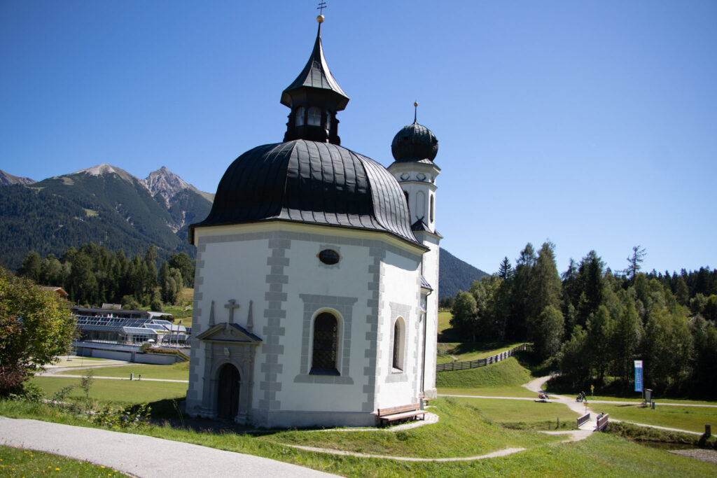 Tegen de middag zijn we in Seefeld, maar ook hier is het zeer druk, en we beslissen om wat verder te rijden op zoek naar een eetgelegenheid. Deze vinden we in Telfs waar we een prachtig zicht hebben op de bergen. Ondertussen maakt Raoul zich zorgen om zijn moto want hij wil niet goed meer starten, en het ding is al redelijk oud. Na het eten moet hij zich naar beneden laten rollen, en dan start de moto. Man man man. We passeren nog het gezellige dorp Mittenwald, en rijden zo door naar Garmisch in Duitsland; hier zijn we al eens gepasseerd toen we onderweg waren naar Slovenië. Nog effe tanken, en dan rijden we weer Berwang binnen. Tegen de vijven zijn we in het hotel. De mannen gaan zwemmen, en ikzelf rust wat uit. Na de zwempartij en de rustpauze is het tijd voor een apero.